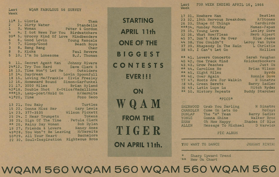 WQAM FABULOUS 56 SURVEY FOR WEEK ENDING APR. 16, 1966