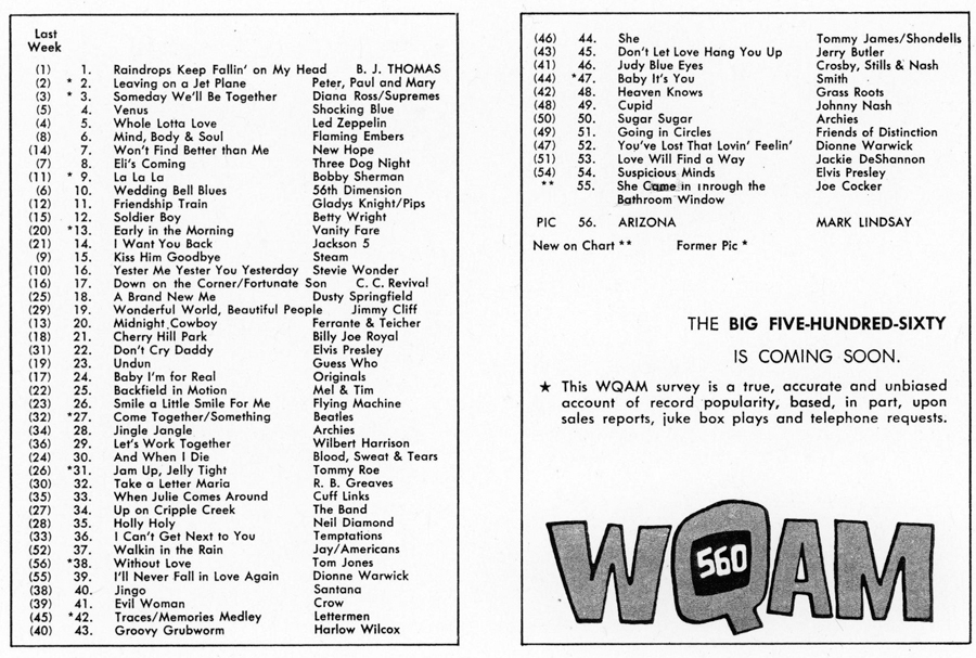 WQAM FABULOUS 56 SURVEY FOR WEEK ENDING JAN. 3, 1970 |