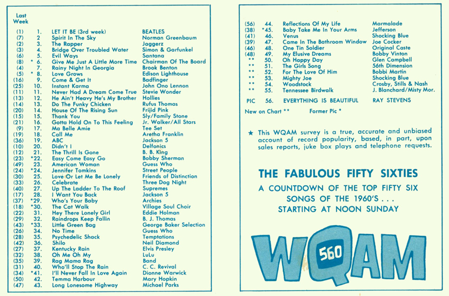 WQAM FABULOUS 56 SURVEY FOR WEEK ENDING APR 4, 1970 |