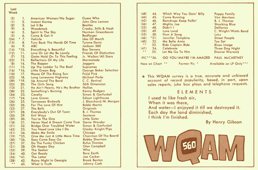 WQAM FABULOUS 56 SURVEY FOR WEEK ENDING MAY 2, 1970 |