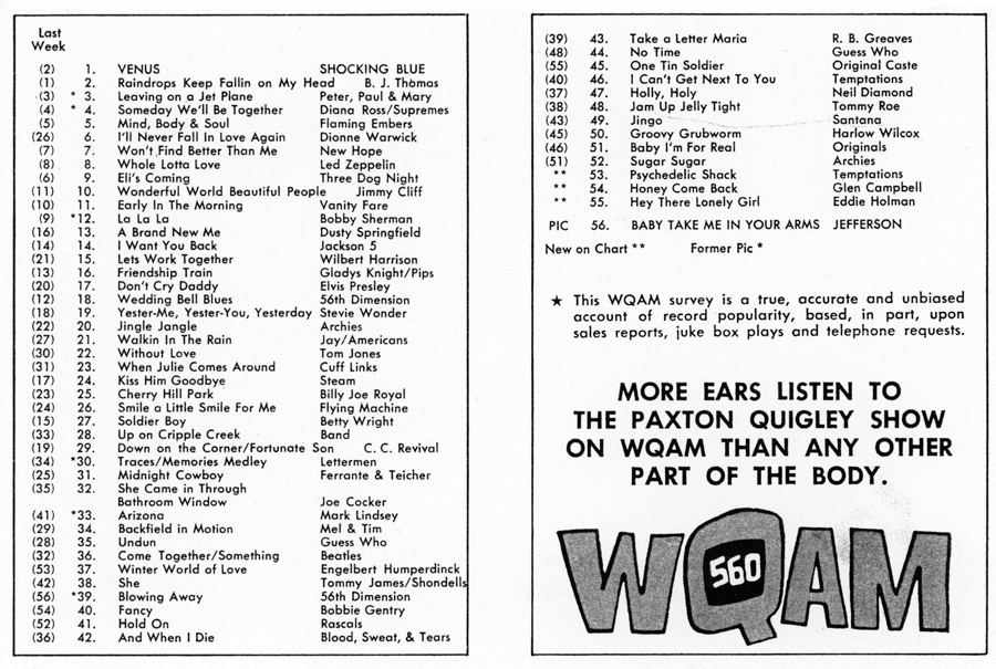 WQAM FABULOUS 56 SURVEY FOR WEEK ENDING JAN. 17, 1970 |