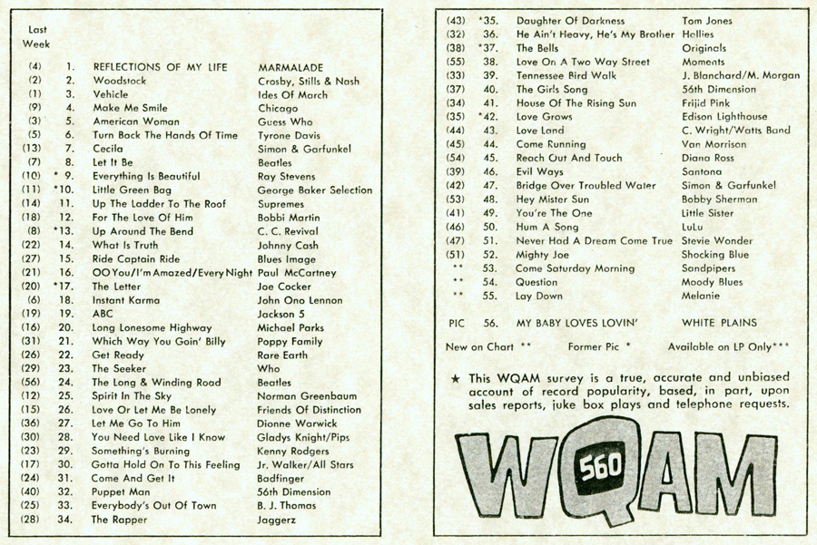 WQAM FABULOUS 56 SURVEY FOR WEEK ENDING MAY 23, 1970 |