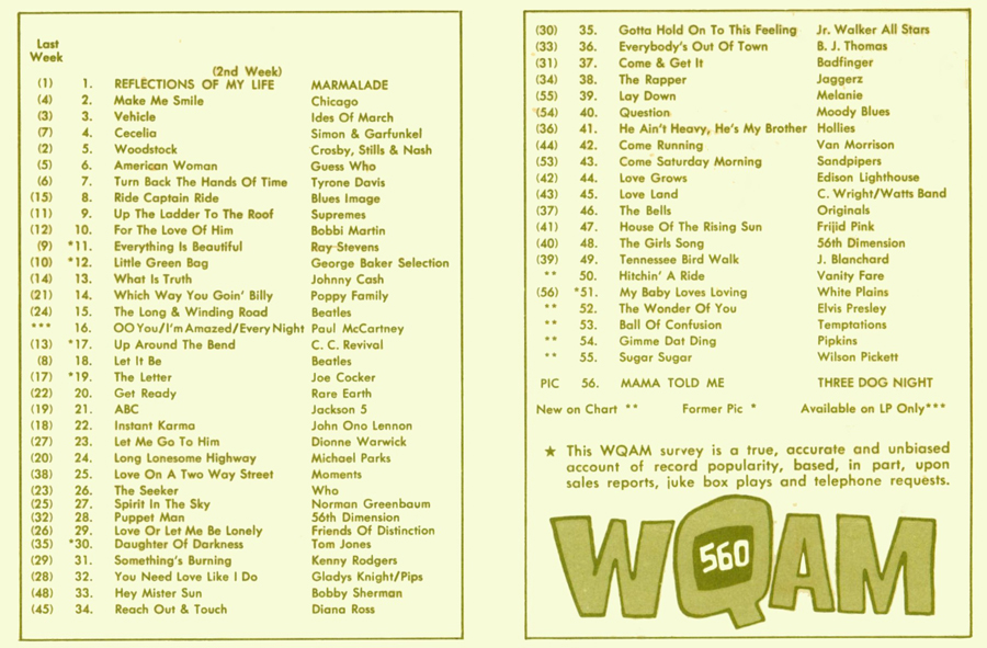 WQAM FABULOUS 56 SURVEY FOR WEEK ENDING MAY 30, 1970 |