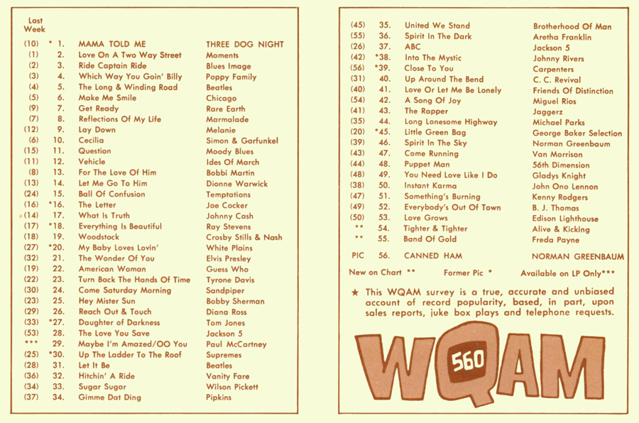WQAM FABULOUS 56 SURVEY FOR WEEK ENDING JUN 20, 1970 |