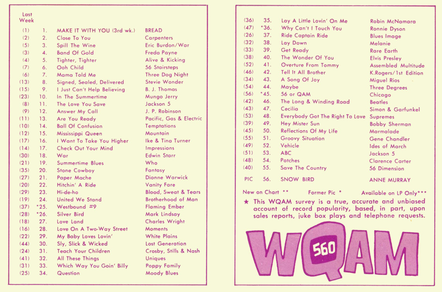 WQAM FABULOUS 56 SURVEY FOR WEEK ENDING AUG 8, 1970 |