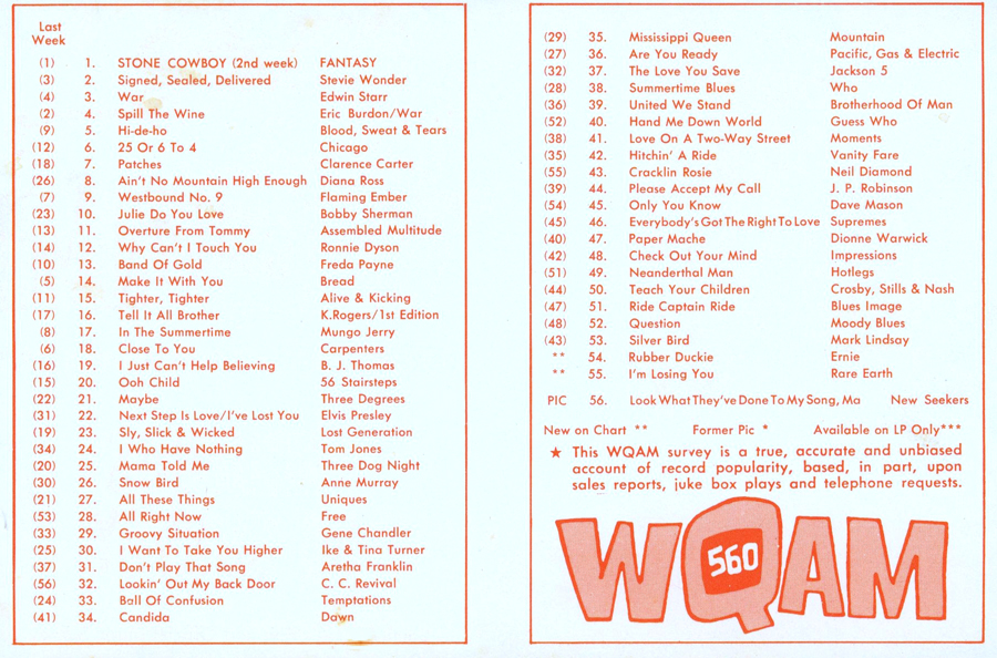 WQAM FABULOUS 56 SURVEY FOR WEEK ENDING SEPT. 5, 1970 |