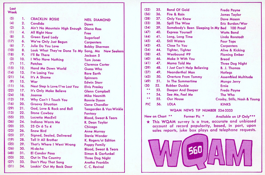 WQAM FABULOUS 56 SURVEY FOR WEEK ENDING OCT. 10, 1970 |