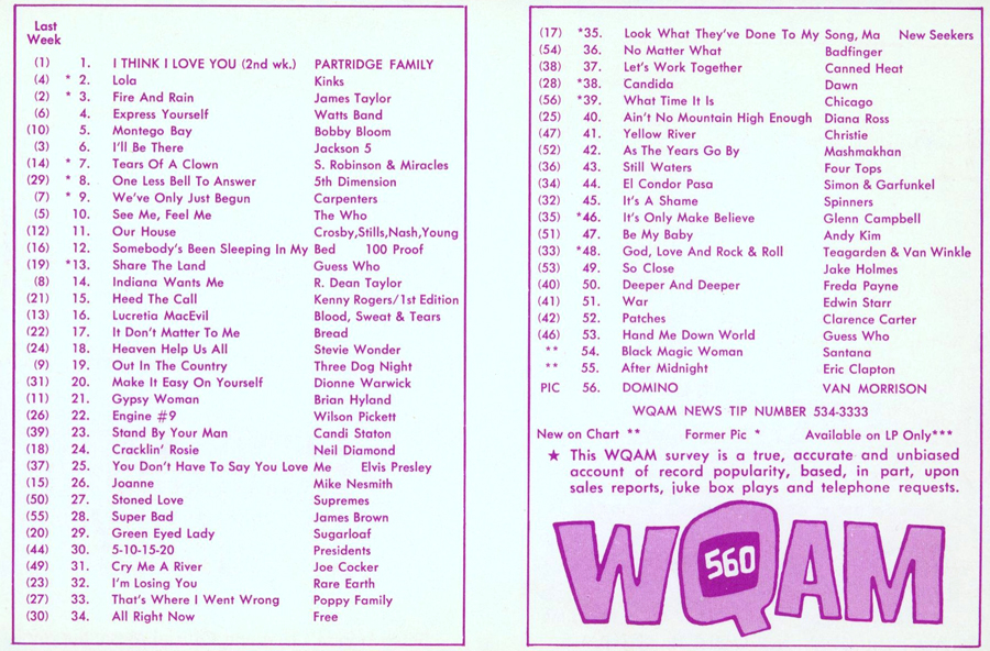 WQAM FABULOUS 56 SURVEY FOR WEEK ENDING NOV. 21, 1970 |