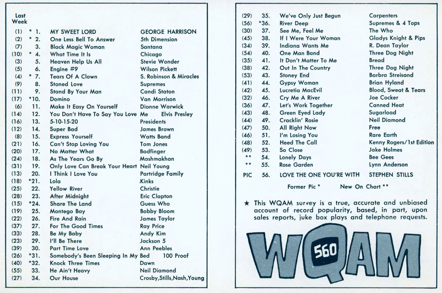 WQAM FABULOUS 56 SURVEY FOR WEEK ENDING DEC. 19, 1970 |