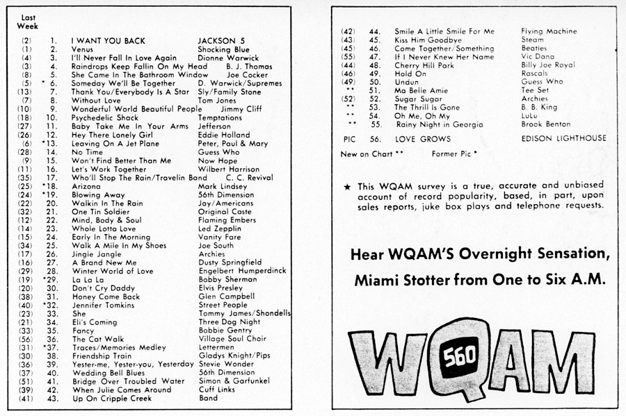 WQAM FABULOUS 56 SURVEY FOR WEEK ENDING FEB. 7, 1970 |