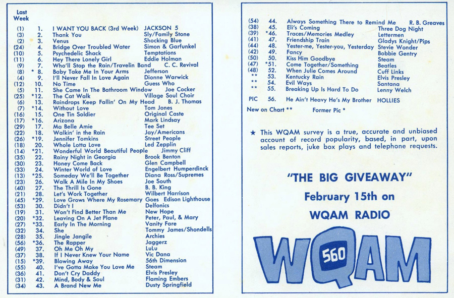 WQAM FABULOUS 56 SURVEY FOR WEEK ENDING FEB. 21, 1970 |
