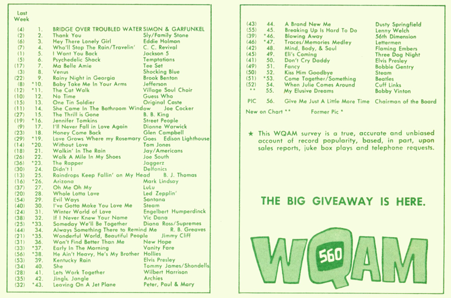 WQAM FABULOUS 56 SURVEY FOR WEEK ENDING FEB 28, 1970 |