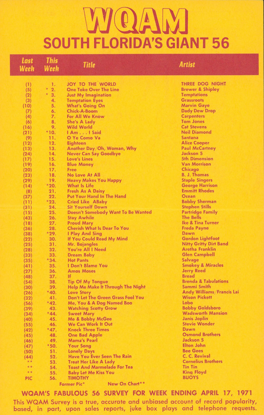 WQAM FABULOUS 56 SURVEY FOR WEEK ENDING APRIL 17, 1971 |