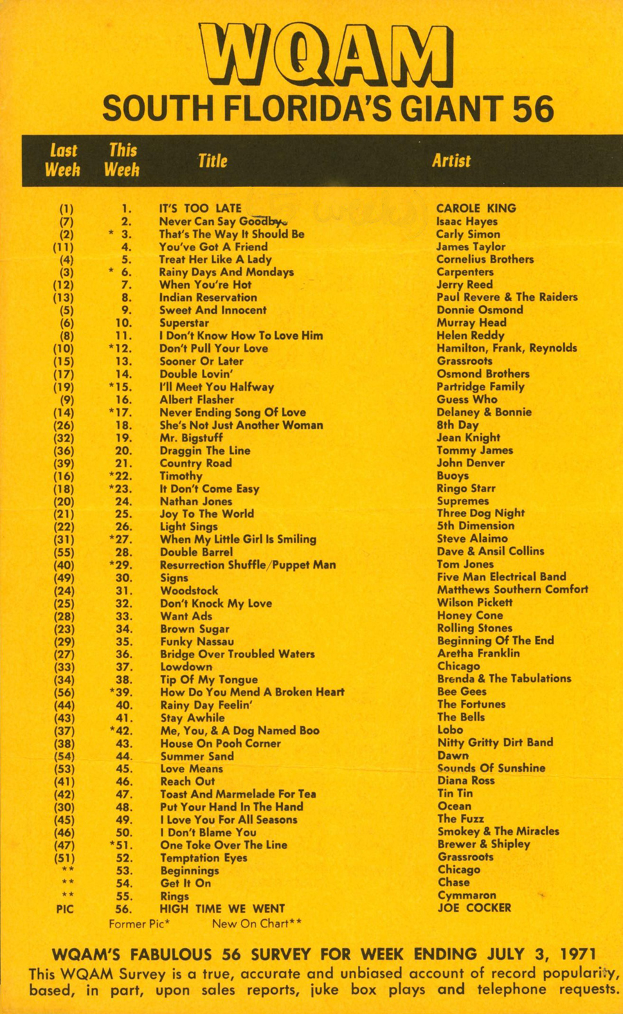 WQAM FABULOUS 56 SURVEY FOR WEEK ENDING JUL 3, 1971 |