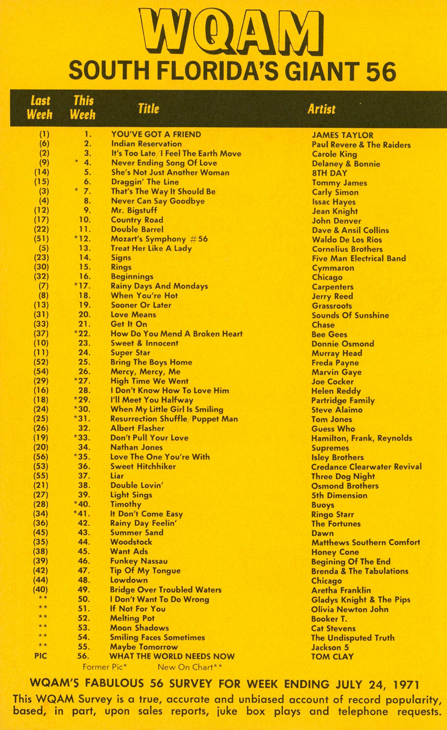 WQAM FABULOUS 56 SURVEY FOR WEEK ENDING JULY 24, 1971 |