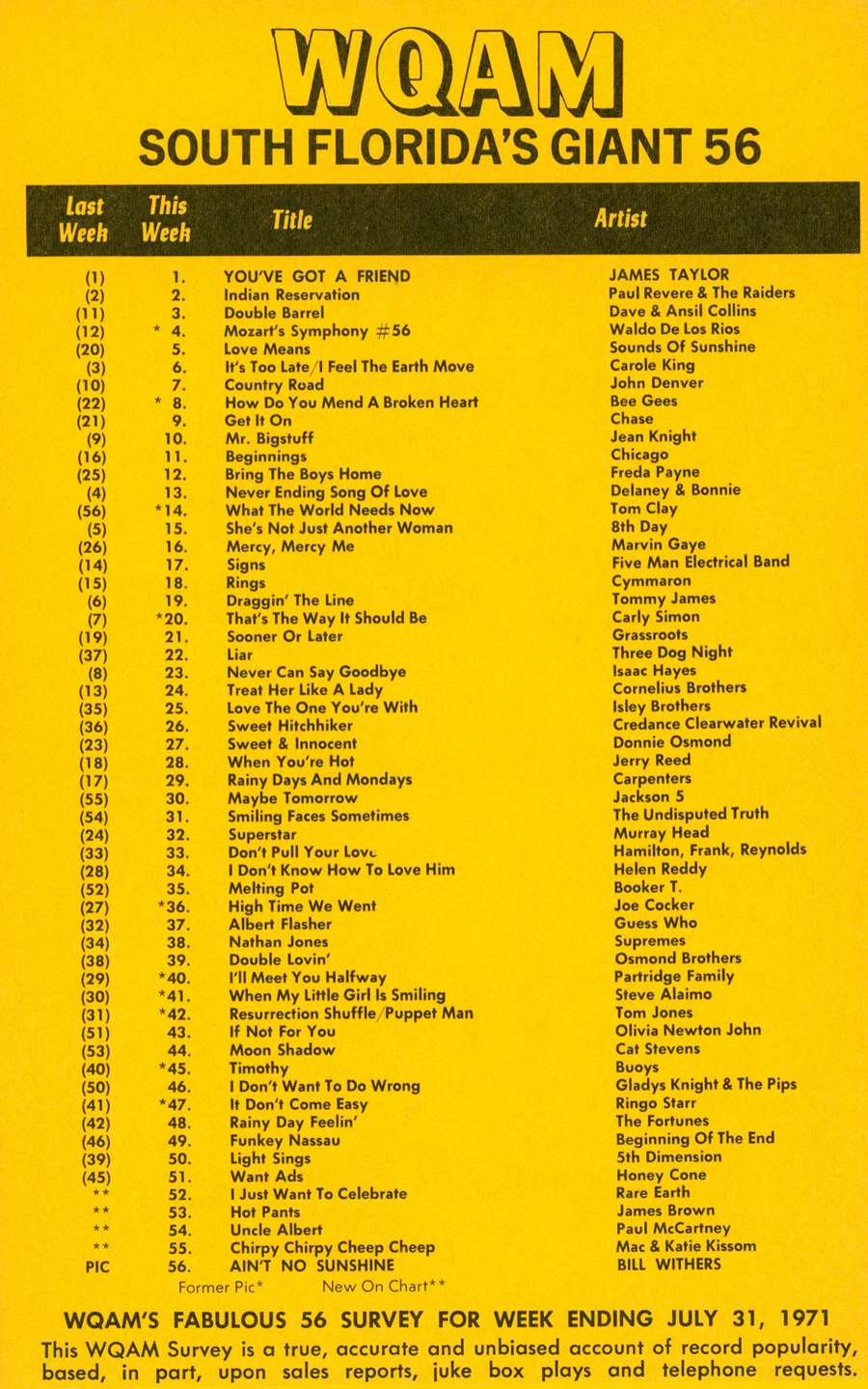 WQAM FABULOUS 56 SURVEY FOR WEEK ENDING JULY 31, 1971 |