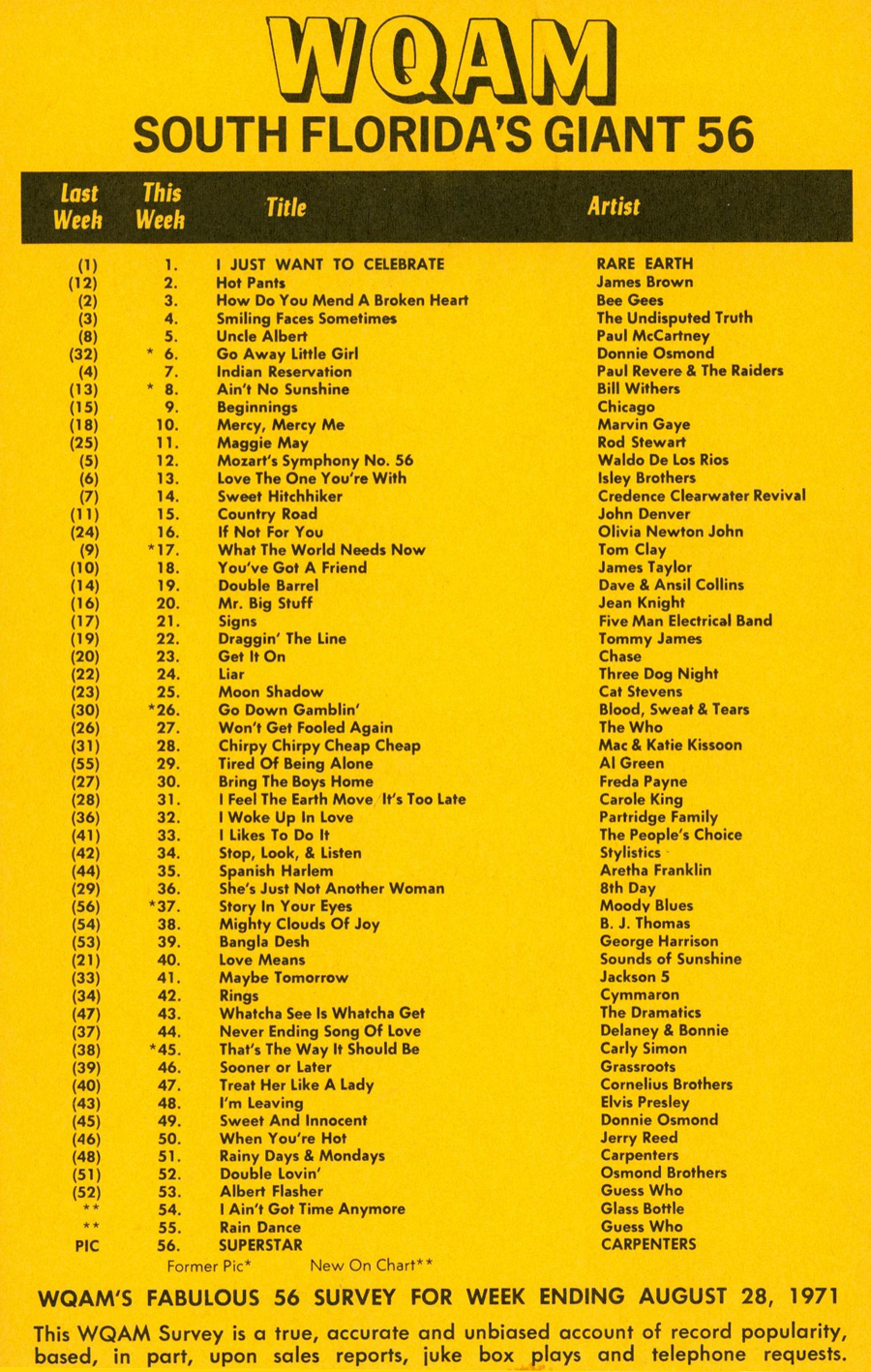 WQAM FABULOUS 56 SURVEY FOR WEEK ENDING AUG. 28, 1971 |