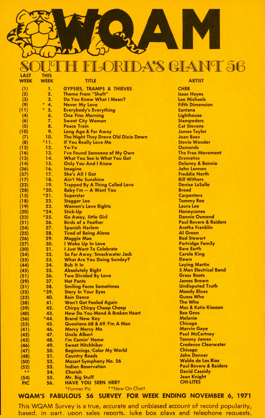 WQAM FABULOUS 56 SURVEY FOR WEEK ENDING NOV. 6, 1971 |