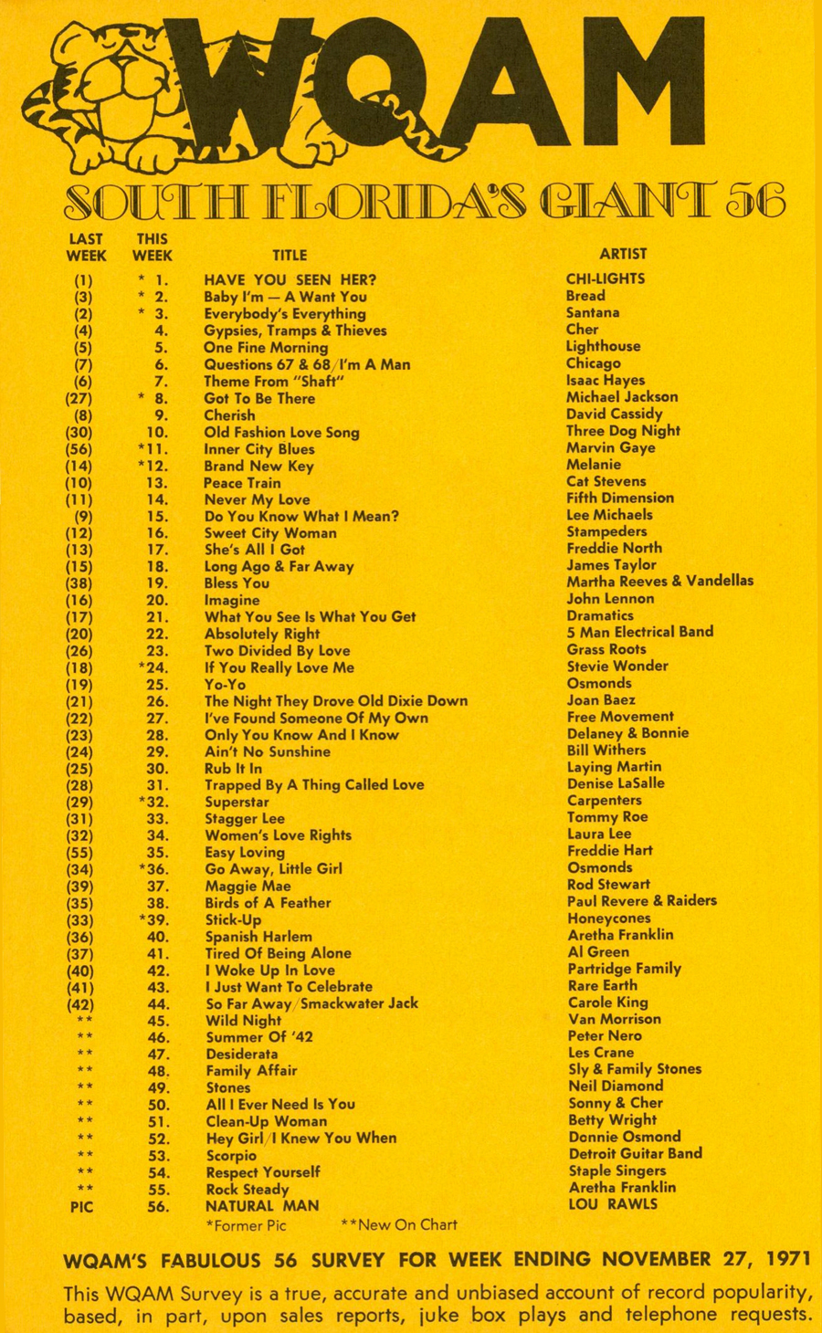 WQAM FABULOUS 56 SURVEY FOR WEEK ENDING NOV. 27, 1971 |