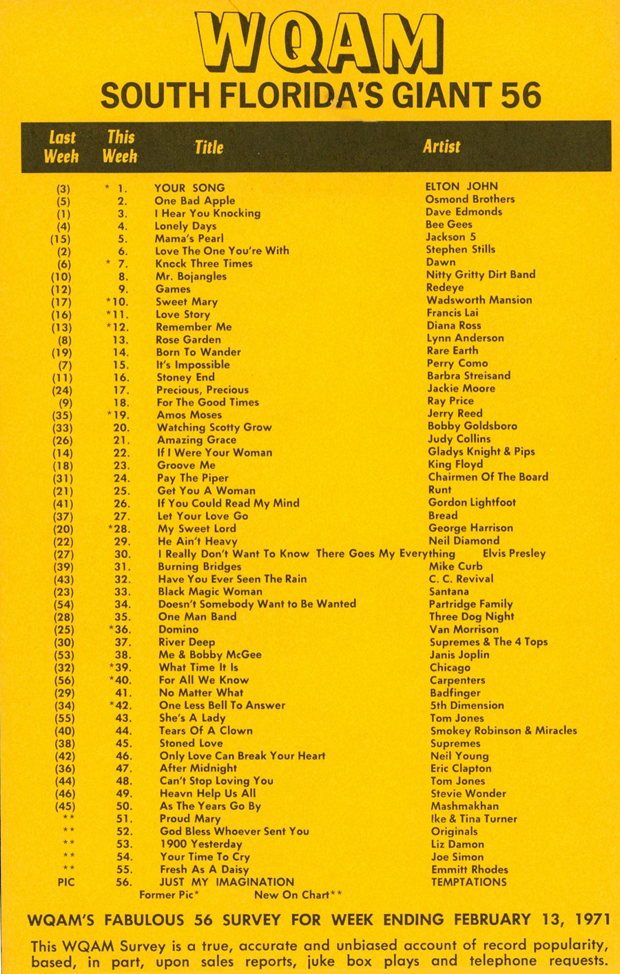 WQAM FABULOUS 56 SURVEY FOR WEEK ENDING FEB. 13, 1971 |