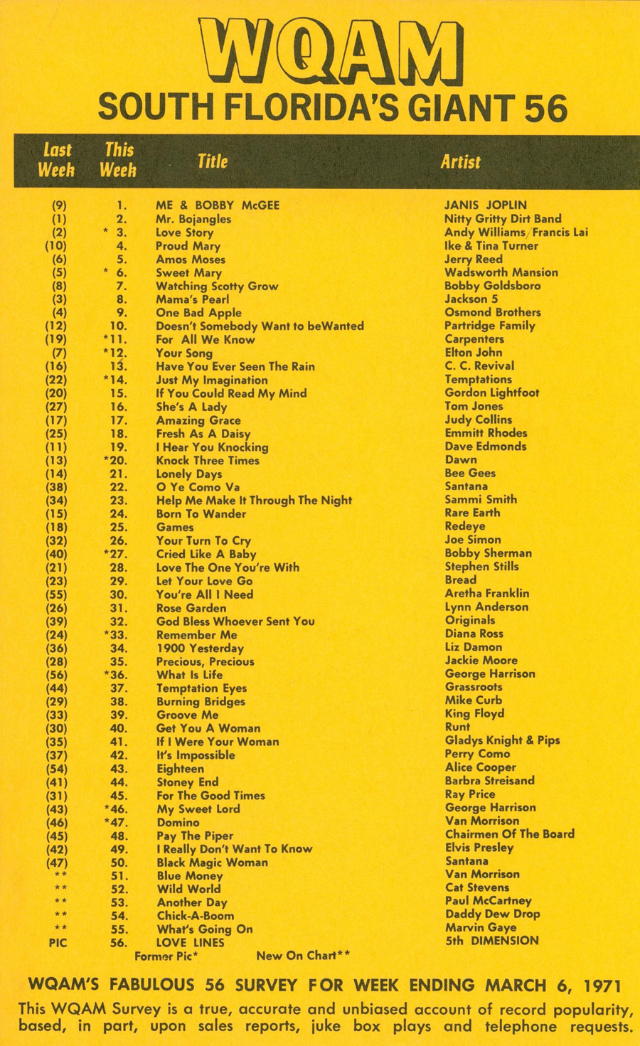 WQAM FABULOUS 56 SURVEY FOR WEEK ENDING MARCH 6, 1971 |