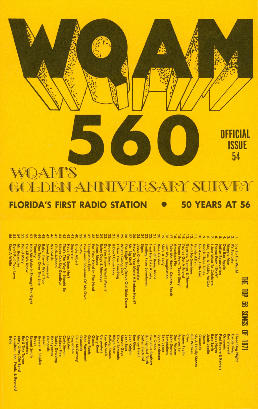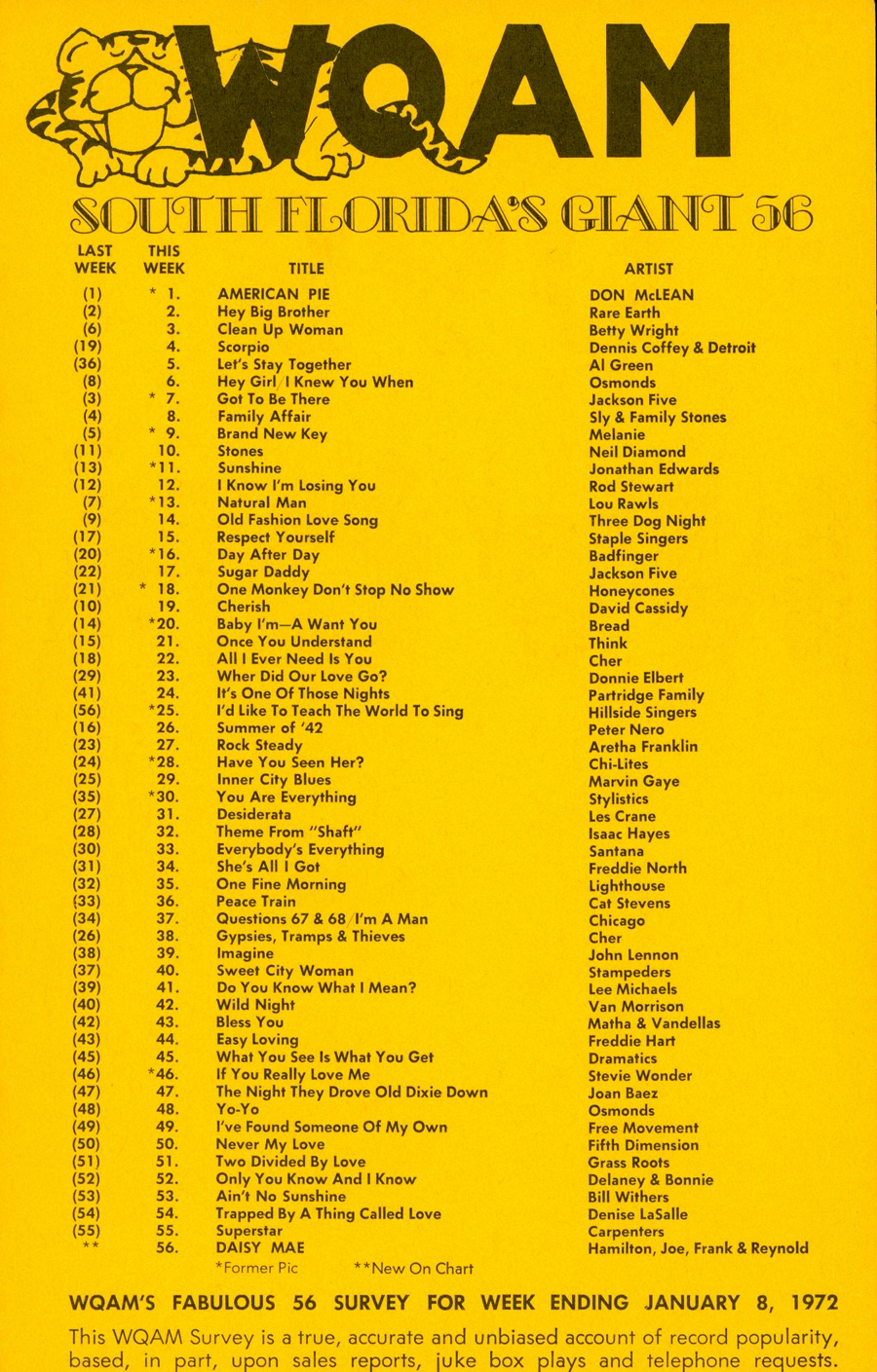 WQAM FABULOUS 56 SURVEY FOR WEEK ENDING JAN. 8, 1972 |
