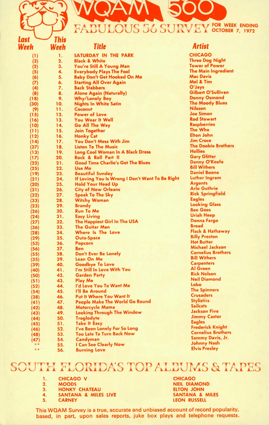 WQAM FABULOUS 56 SURVEY FOR WEEK ENDING OCT. 7, 1972 |
