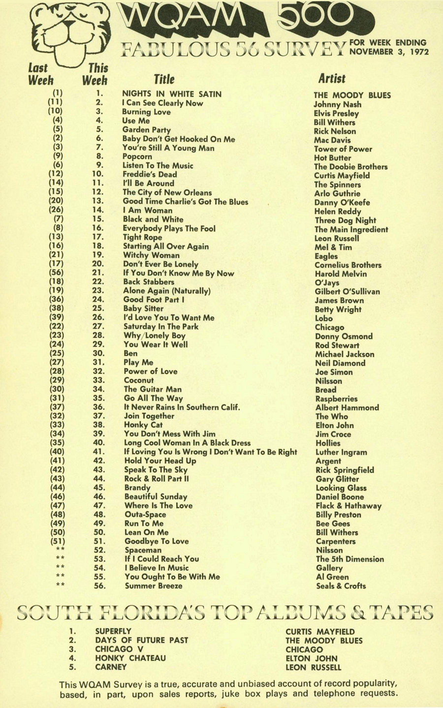 WQAM FABULOUS 56 SURVEY FOR WEEK ENDING NOV. 4, 1972 |