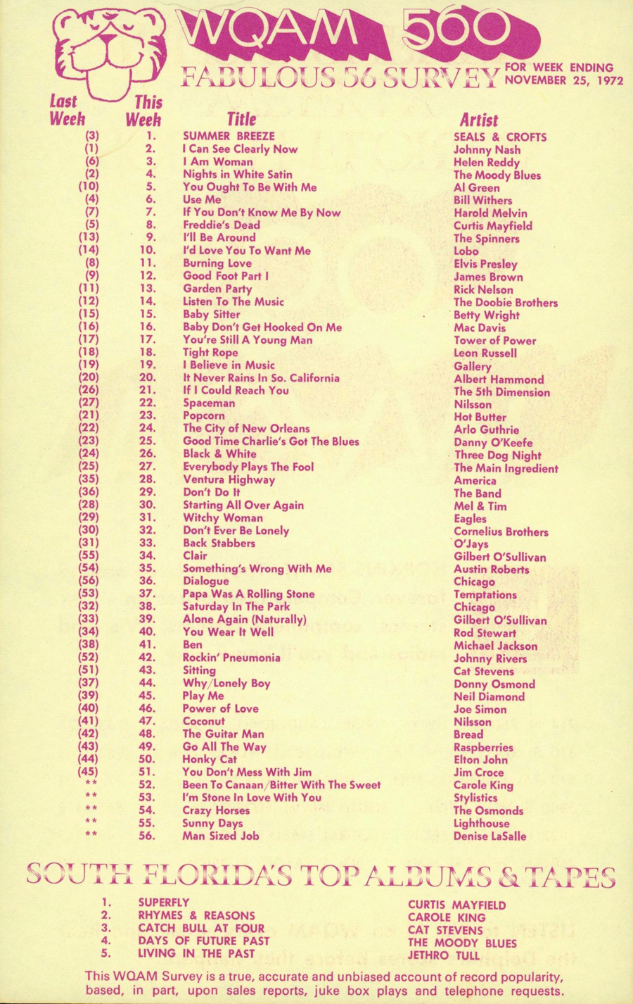 WQAM FABULOUS 56 SURVEY FOR WEEK ENDING NOV. 25, 1972 |