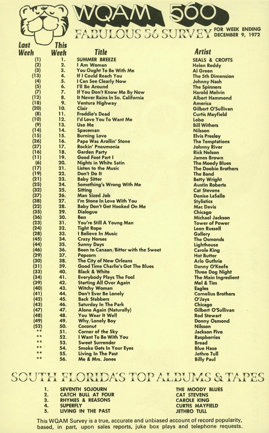 WQAM FABULOUS 56 SURVEY FOR WEEK ENDING DEC. 9, 1972 |