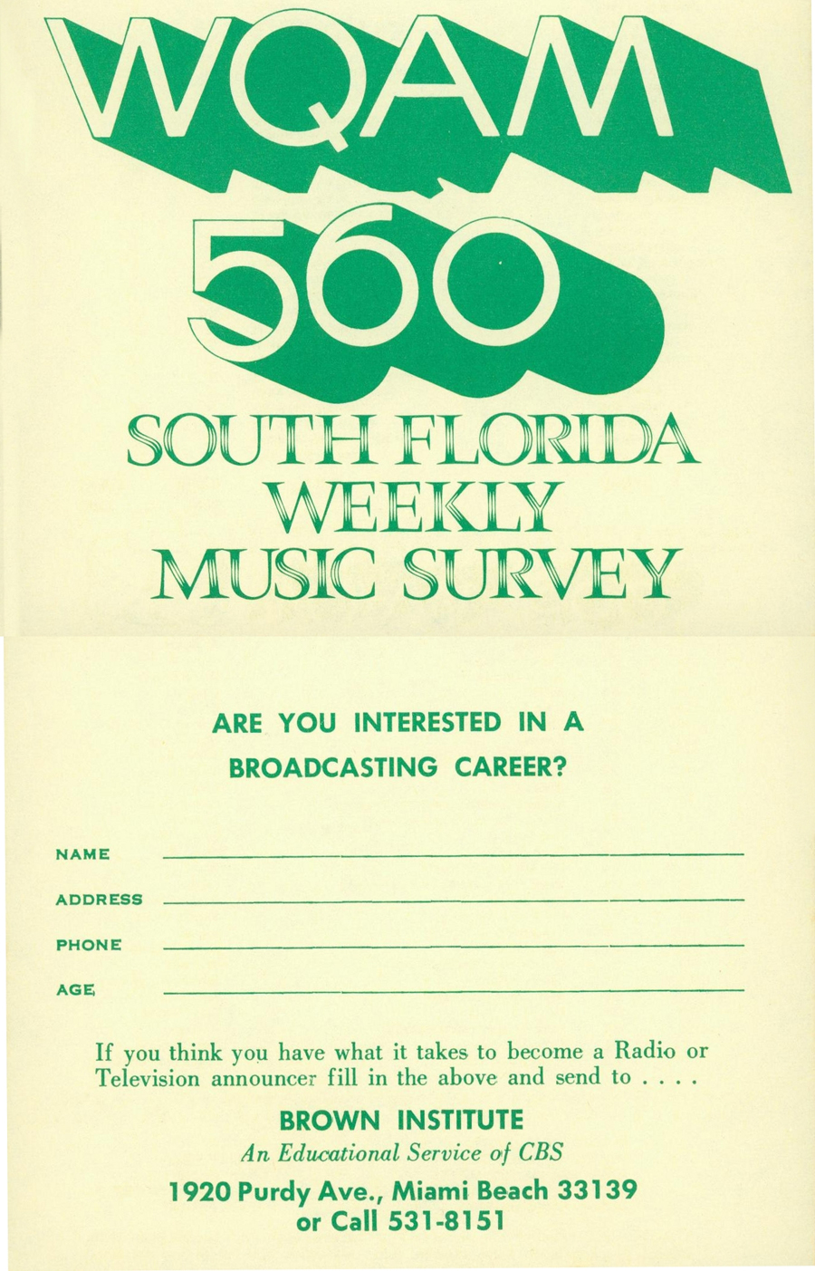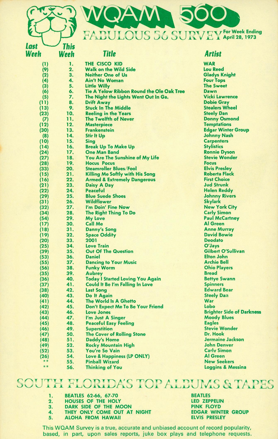 WQAM FABULOUS 56 SURVEY FOR WEEK ENDING APRIL 28, 1973 |