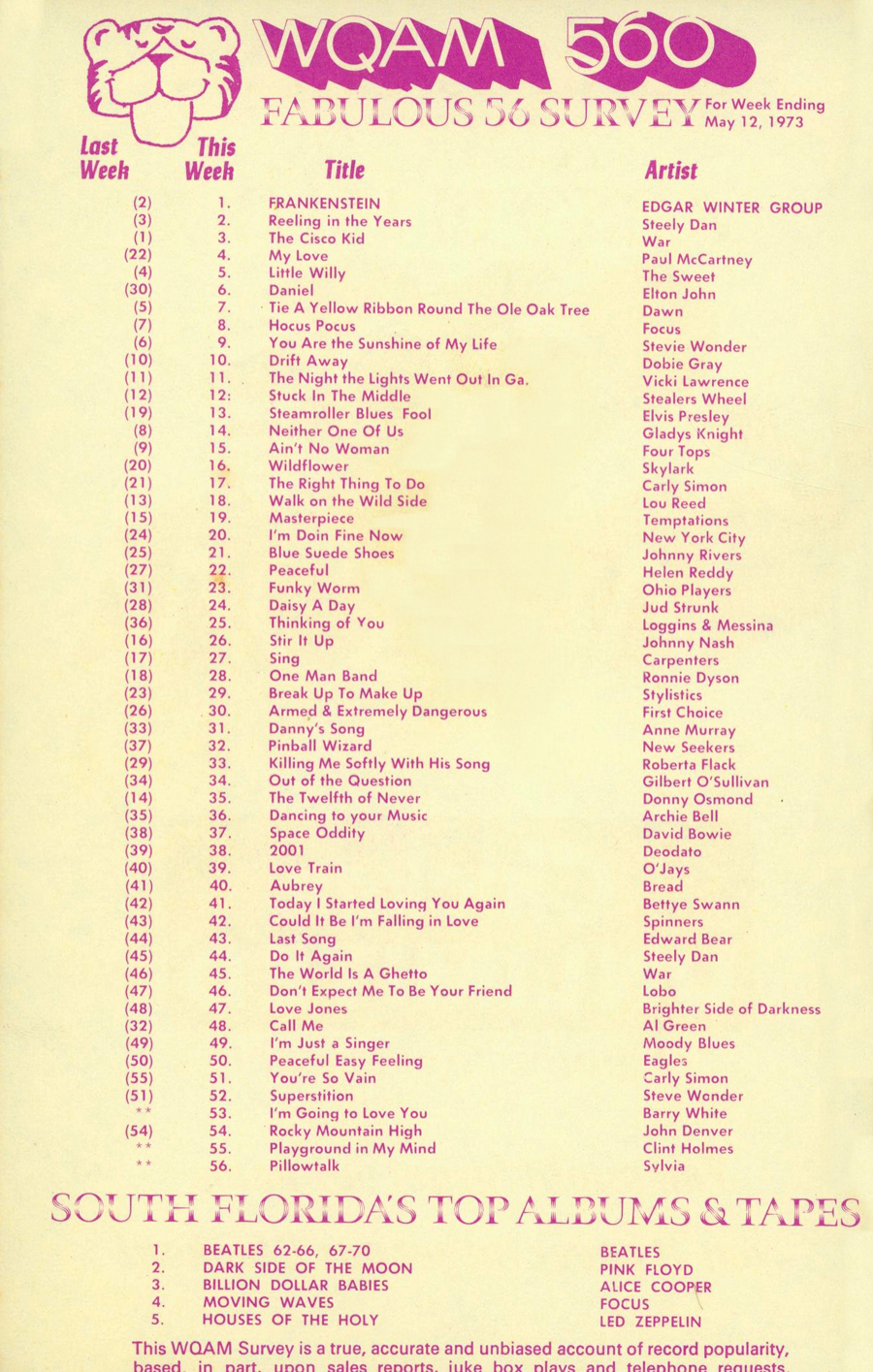 WQAM FABULOUS 56 SURVEY FOR WEEK ENDING MAY 12, 1973 |