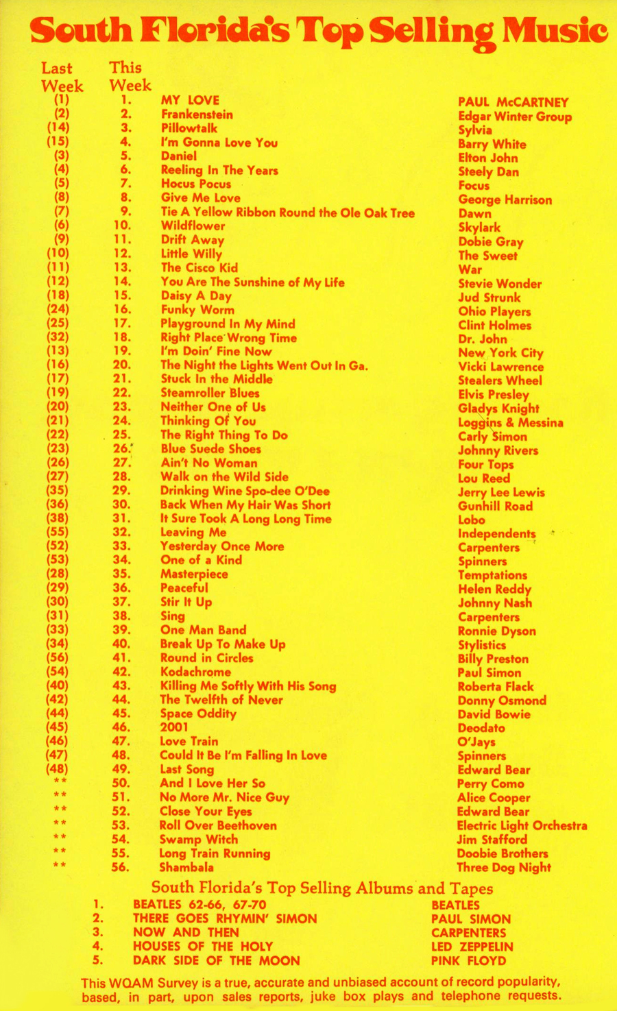 WQAM FABULOUS 56 SURVEY FOR WEEK ENDING JUNE 2, 1973 |