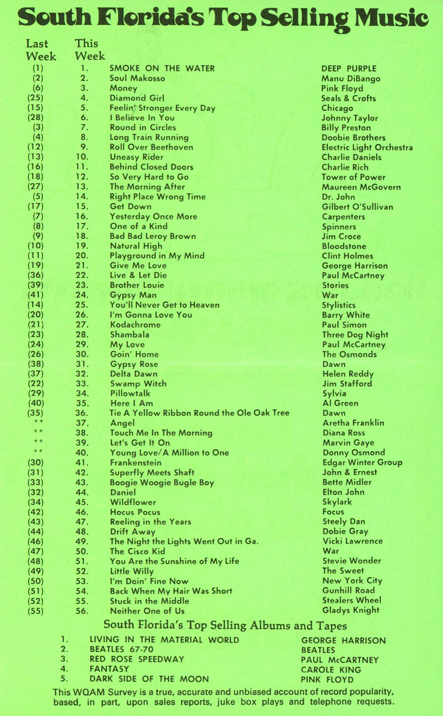 WQAM FABULOUS 56 SURVEY FOR WEEK ENDING JULY 28, 1973 |