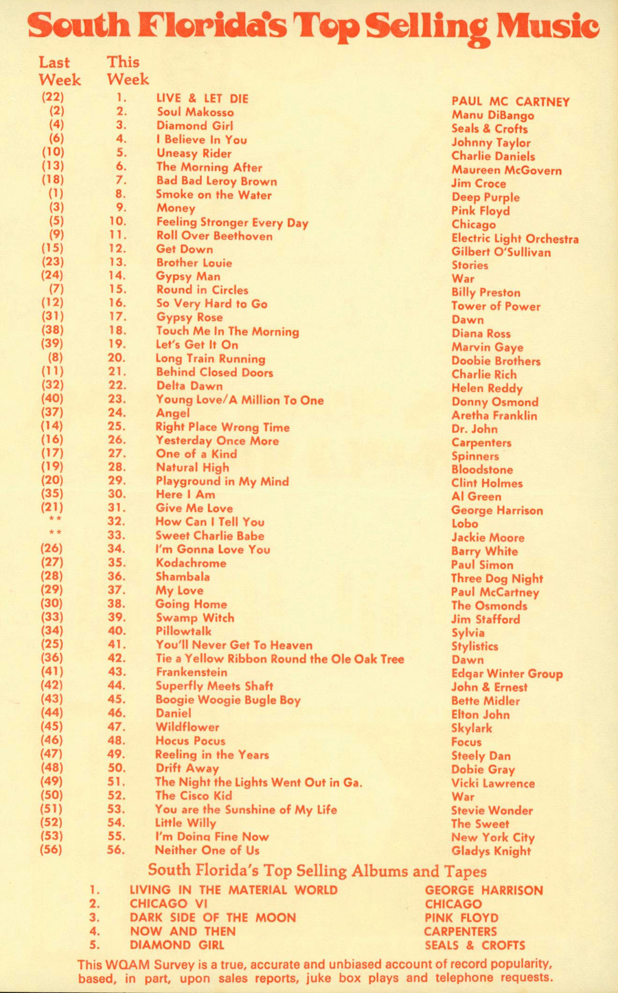 WQAM FABULOUS 56 SURVEY FOR WEEK ENDING AUG. 4, 1973 |