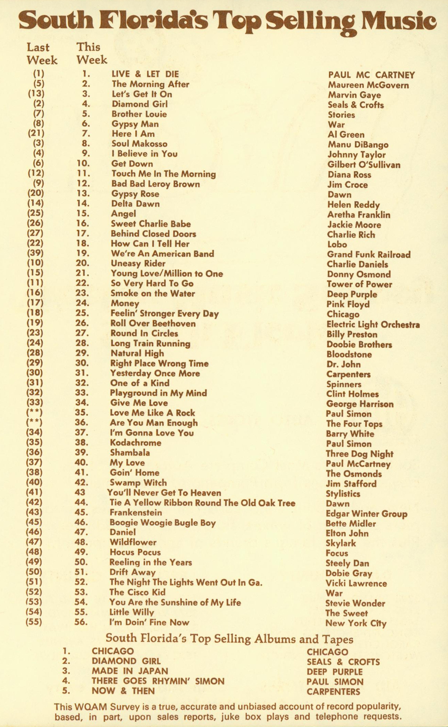 WQAM FABULOUS 56 SURVEY FOR WEEK ENDING AUG. 18, 1973 |
