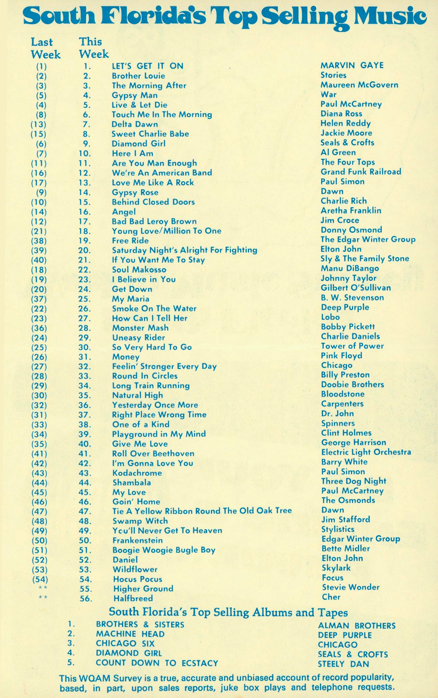 WQAM FABULOUS 56 SURVEY FOR WEEK ENDING SEP. 1, 1973 |