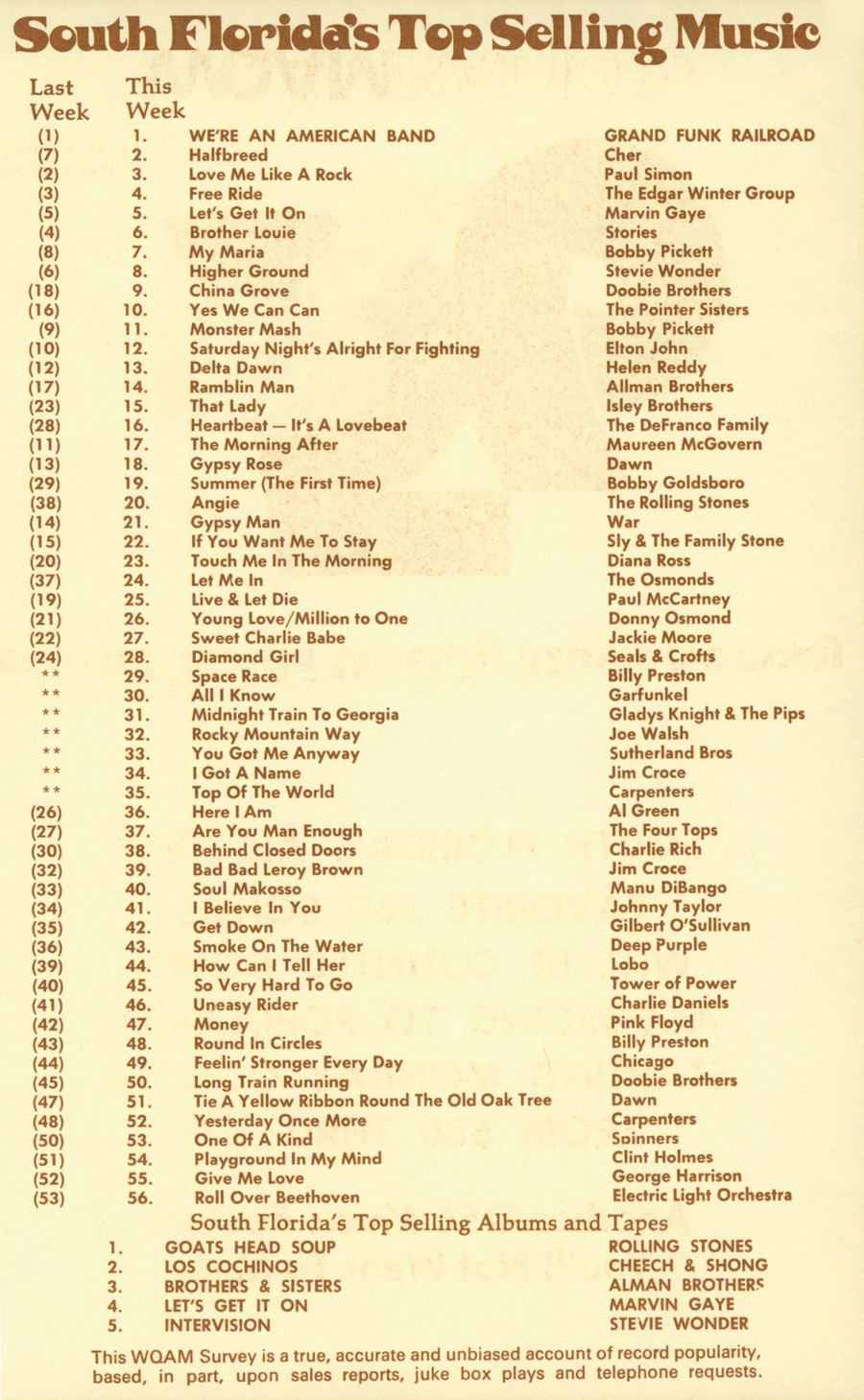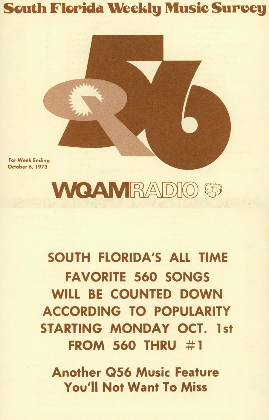 WQAM FABULOUS 56 SURVEY FOR WEEK ENDING OCT. 6, 1973 |