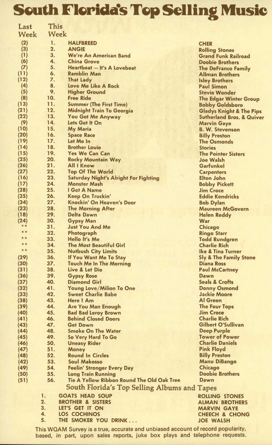 WQAM FABULOUS 56 SURVEY FOR WEEK ENDING OCT. 20, 1973 |