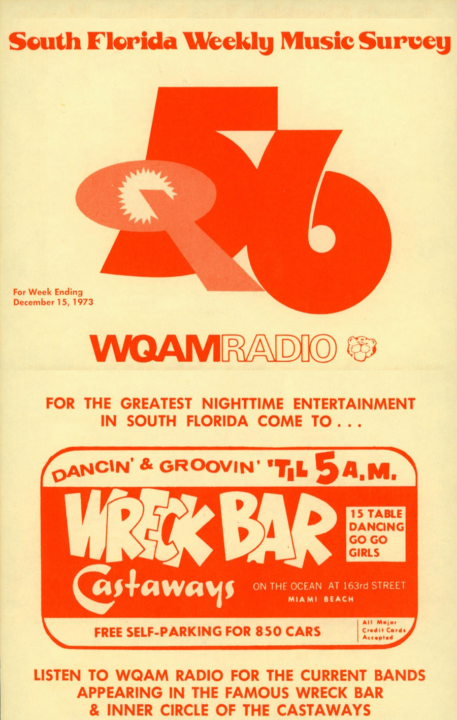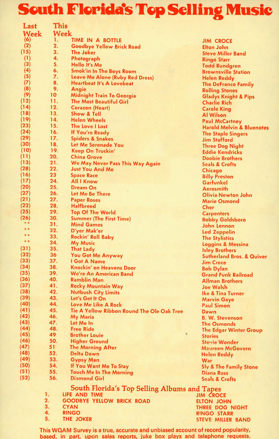 WQAM FABULOUS 56 SURVEY FOR WEEK ENDING DEC. 15, 1973 |