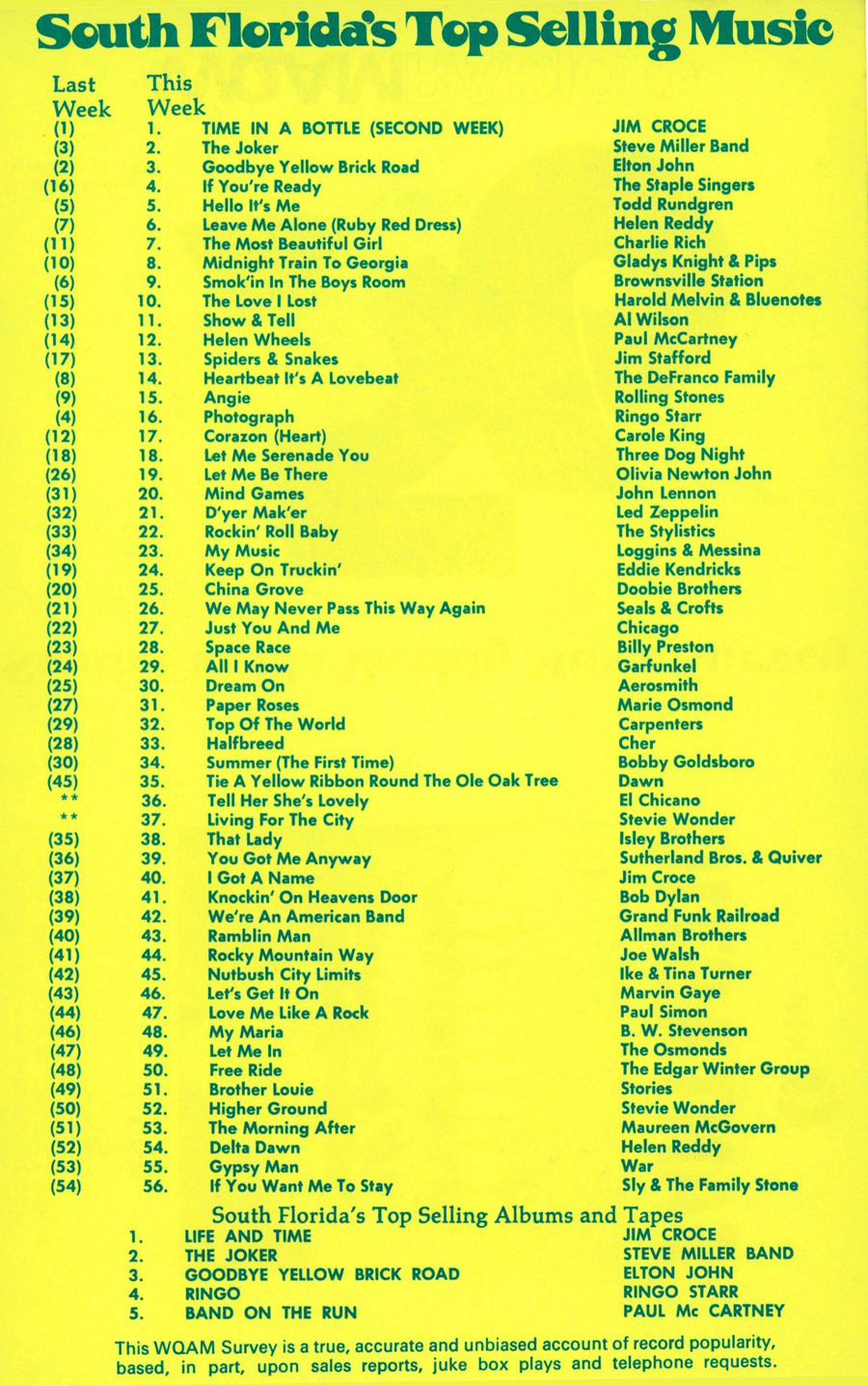 WQAM FABULOUS 56 SURVEY FOR WEEK ENDING DEC. 22, 1973 |