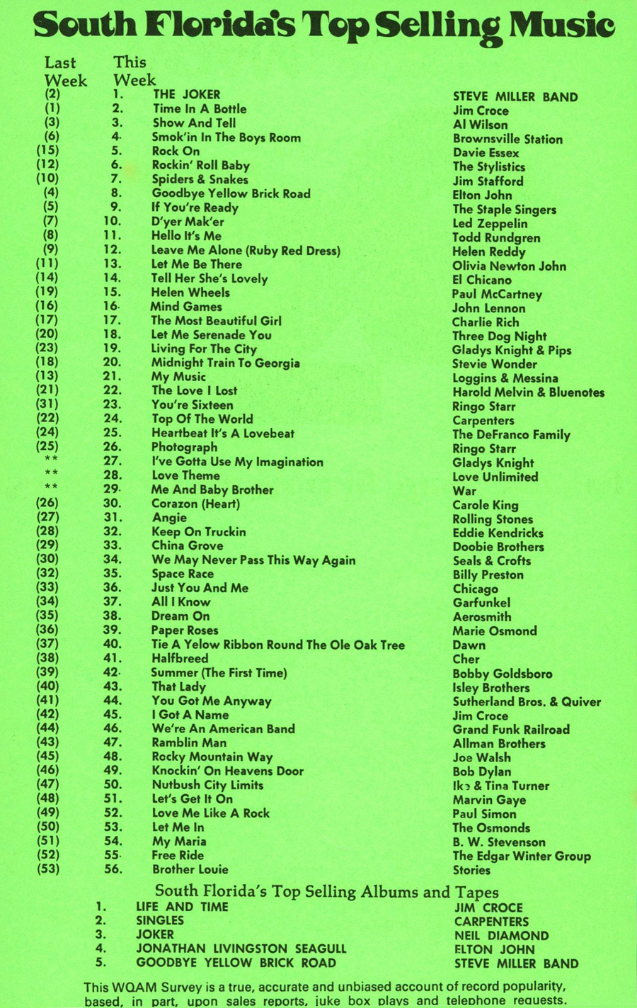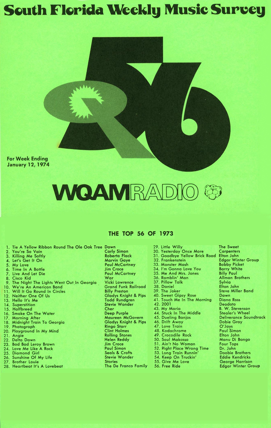 WQAM FABULOUS 56 SURVEY FOR WEEK ENDING JAN. 12, 1974 |