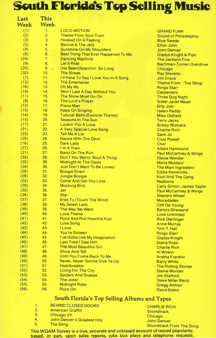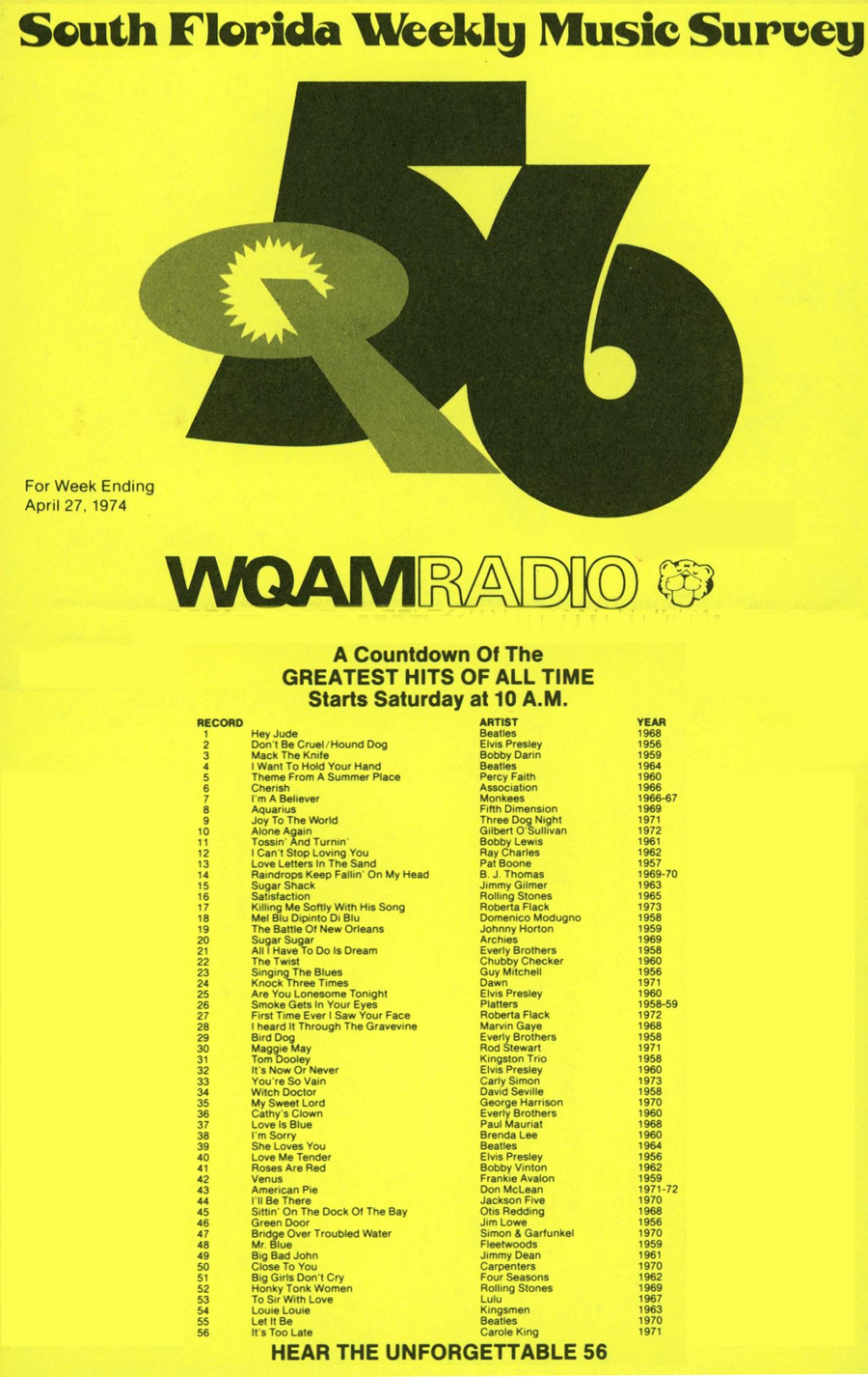 WQAM FABULOUS 56 SURVEY FOR WEEK ENDING APRIL 27, 1974 |
