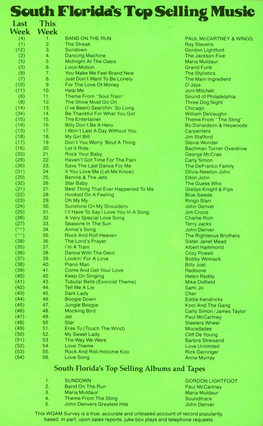 WQAM FABULOUS 56 SURVEY FOR WEEK ENDING JUNE 1, 1974 |