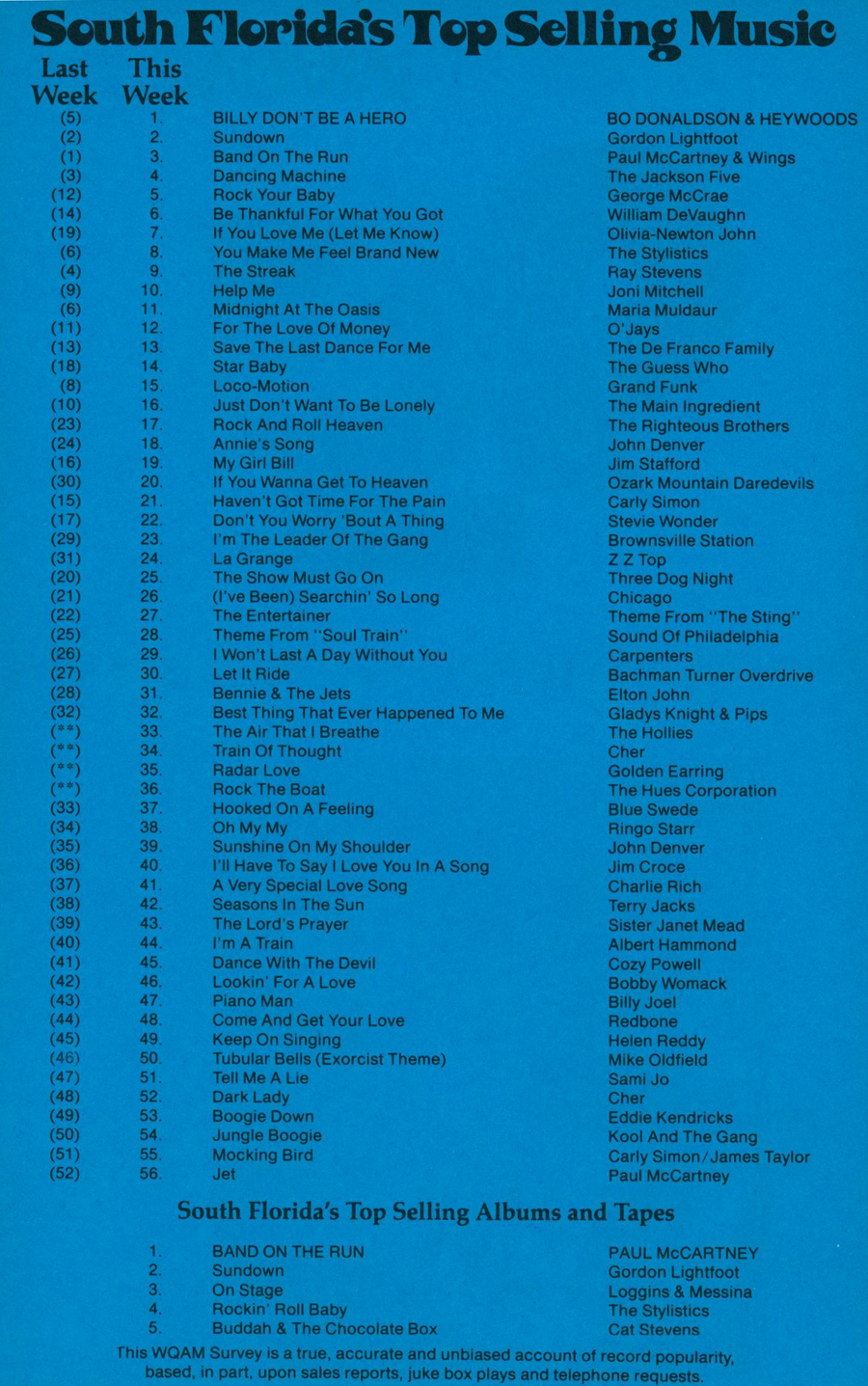 WQAM FABULOUS 56 SURVEY FOR WEEK ENDING JUNE 15, 1974 |