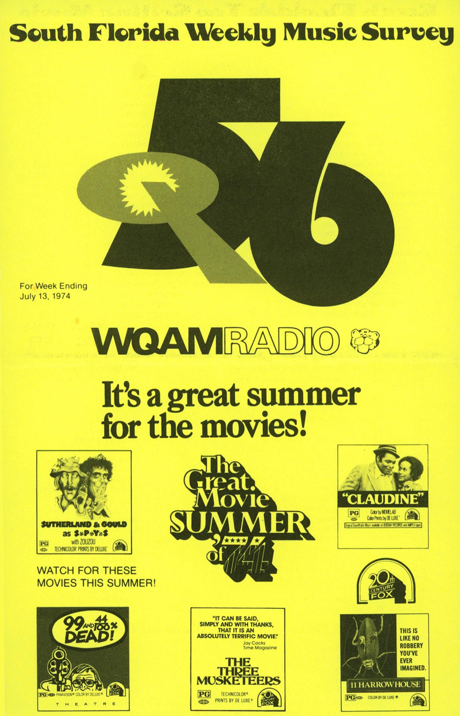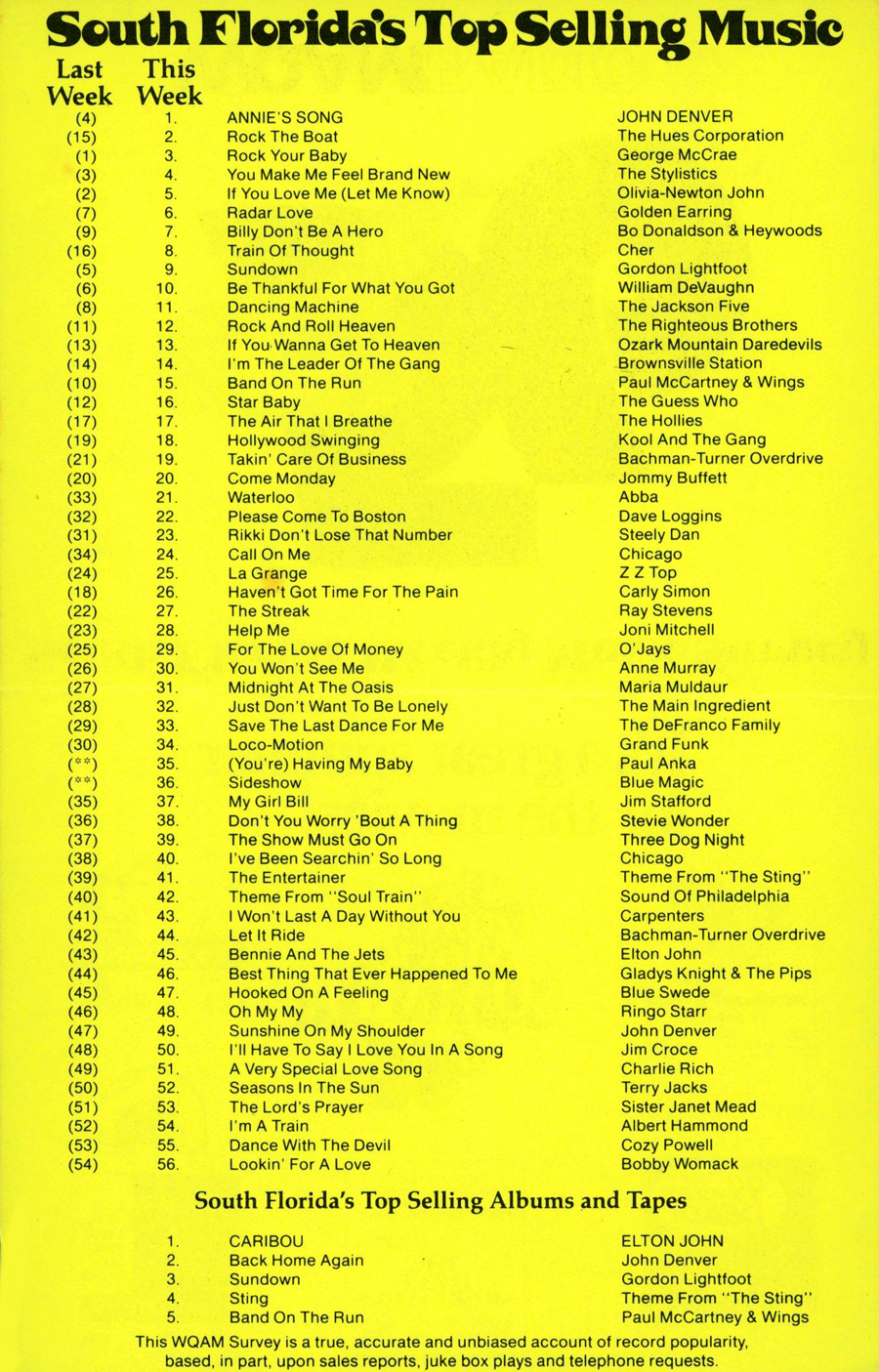 WQAM FABULOUS 56 SURVEY FOR WEEK ENDING JULY 13, 1974 |