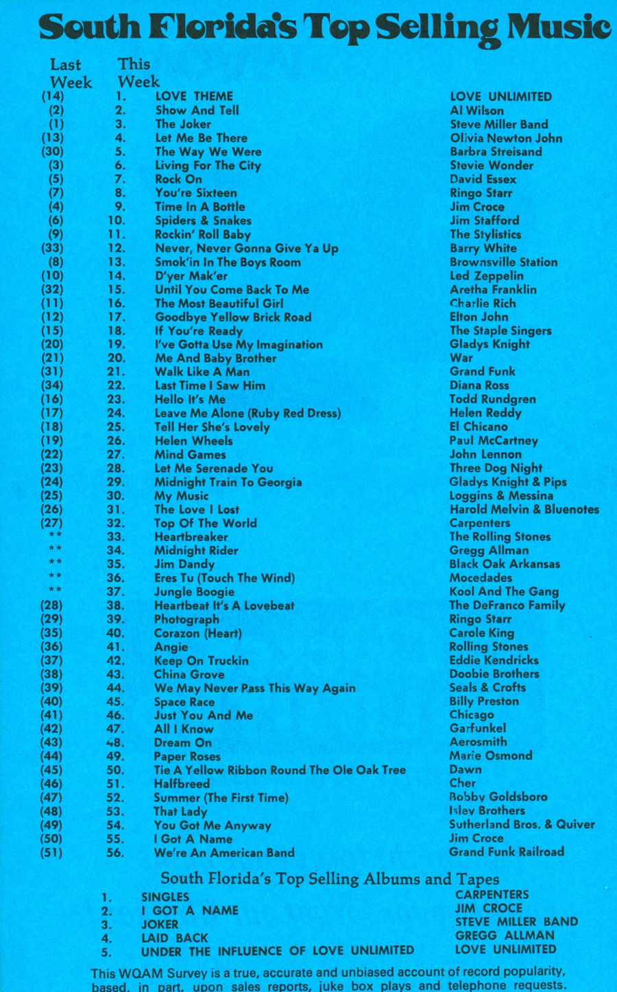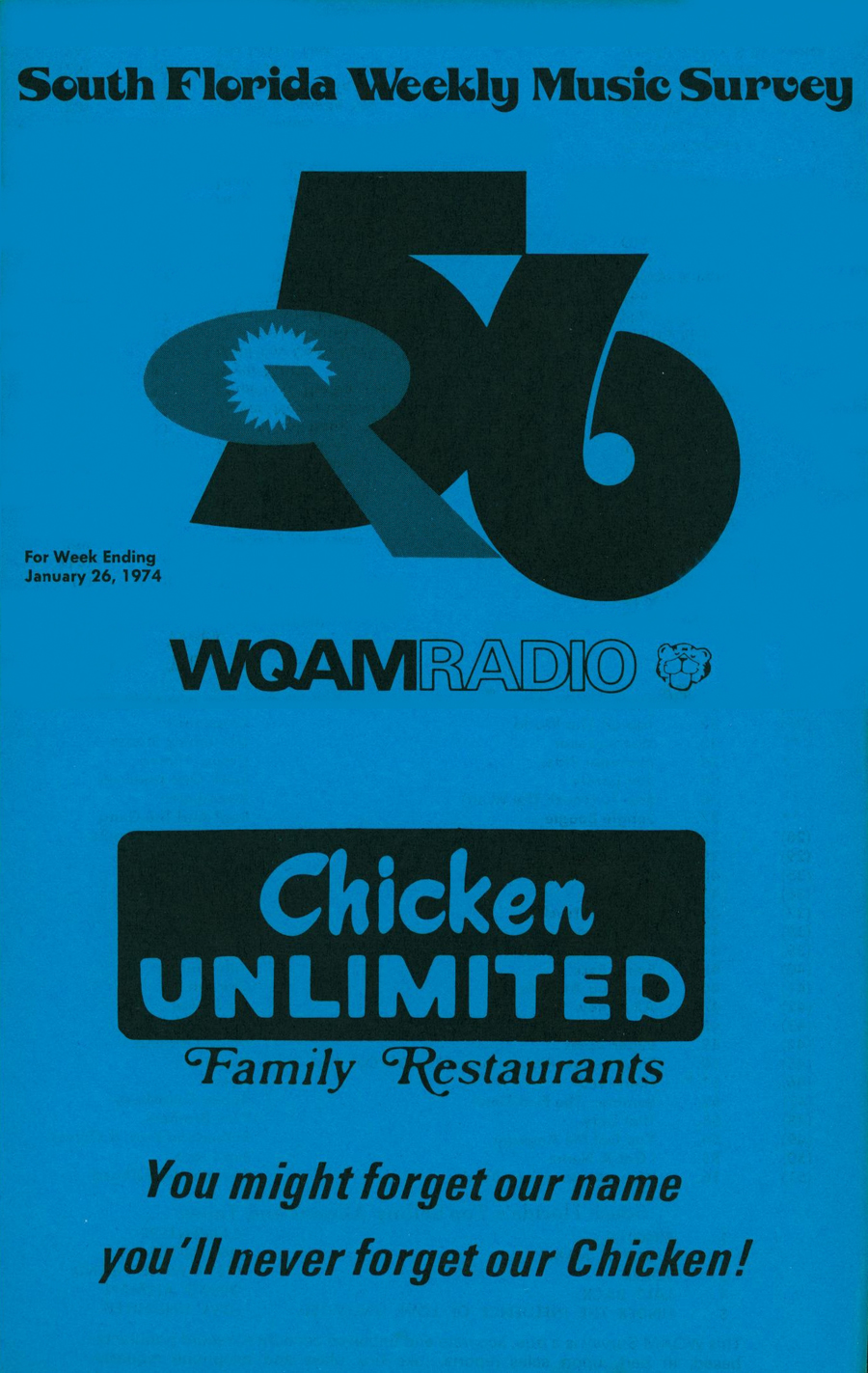 WQAM FABULOUS 56 SURVEY FOR WEEK ENDING JAN. 26, 1974 |
