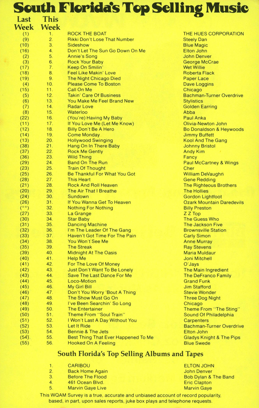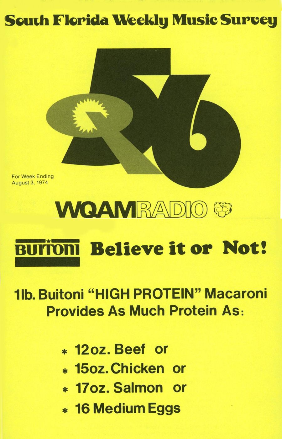 WQAM FABULOUS 56 SURVEY FOR WEEK ENDING AUG 3, 1974 |