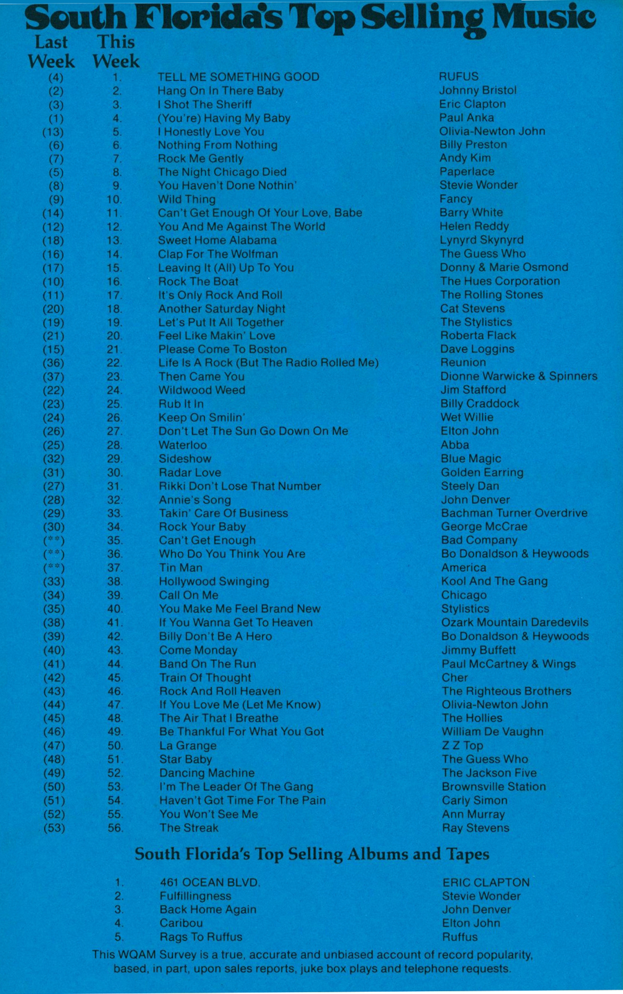 WQAM FABULOUS 56 SURVEY FOR WEEK ENDING SEP. 14, 1974 |