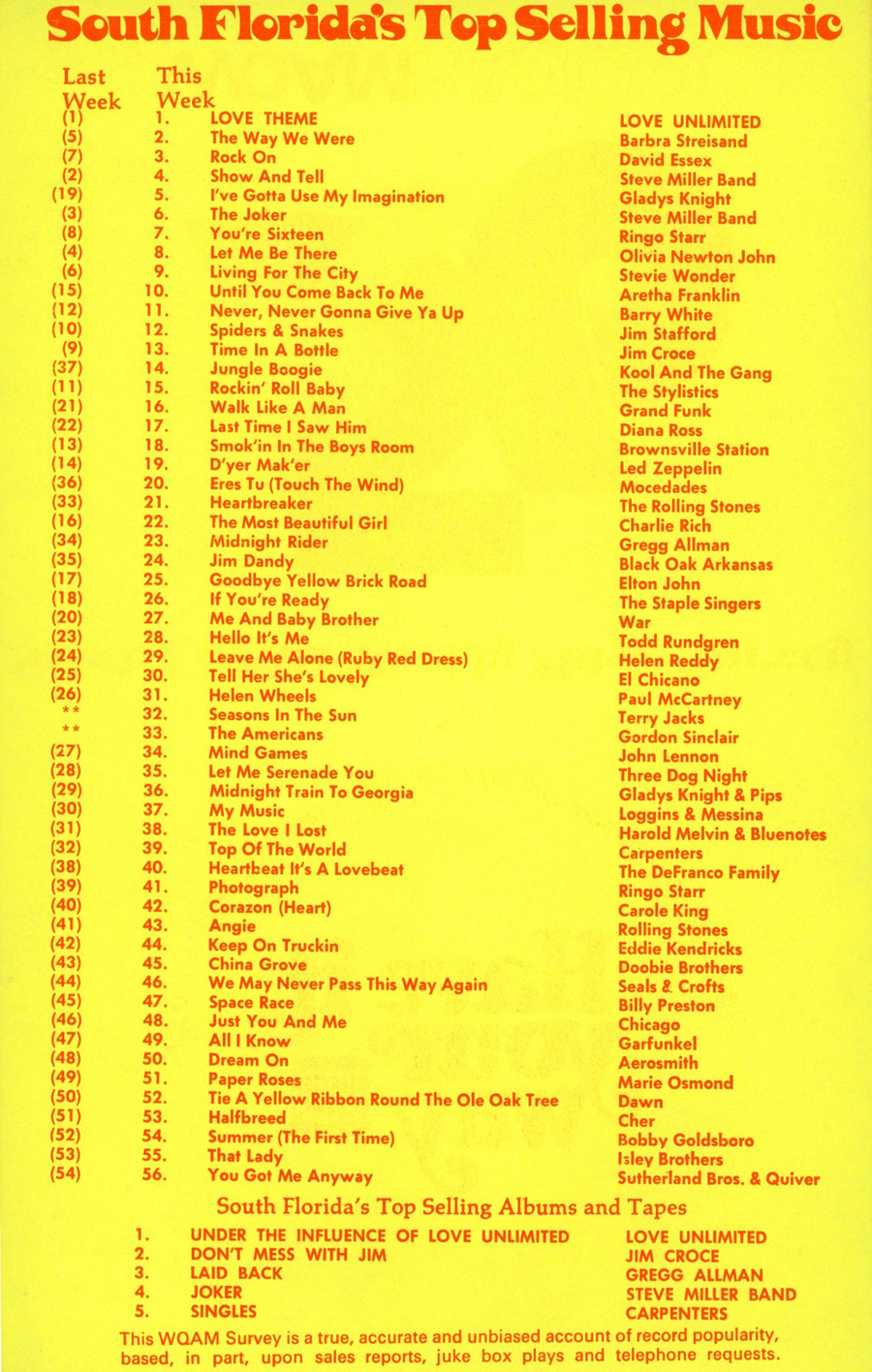 WQAM FABULOUS 56 SURVEY FOR WEEK ENDING FEB. 2, 1974 |
